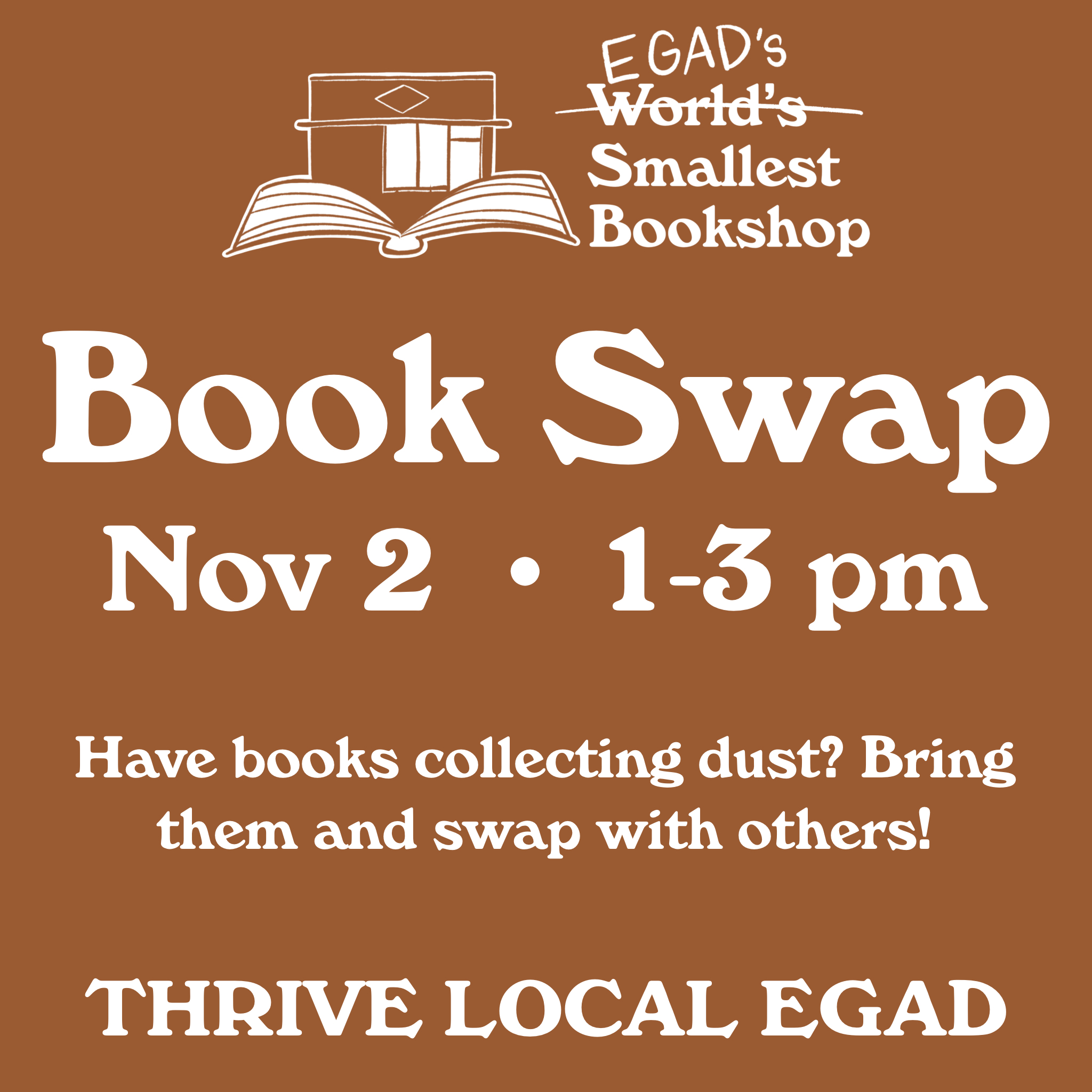 Do you have books collecting dust on your shelf that you’d like to swap for new-to-you to explore? Bring your used books to Thrive Local EGAD for a book swap! For every book you bring, you can take one home.